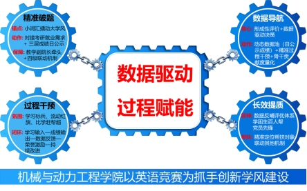 在2025年本科教育质量建设年,机械与动力工程学院直面学风建设中的“痛点”与“难点”,创新引入“科研式”管理思维与“形成性评价”理念,以“英语四级挑战赛”为精准切入点,成功打出了一套靶向明确、协同高效的学风建设“组合拳”。活动以高频词汇学习为内容,建立“每日公布个人、团队、班级三层成绩,每周发布周度总排名及学生骨干对班级贡献度”的动态赛制,依托“学院-辅导员-学生骨干(班干部+入党积极分子)-全体学生”四级联动机制,实现了学风建设从“模糊感知”到“数据驱动”、从“结果考核”到“过程赋能”的根本性转变。活动成效显著,2023级学生英语四级一次通过率大幅提升11个百分点,更探索出一条“精准破题、数据导航、过程干预、长效提质”的学风建设新路径。